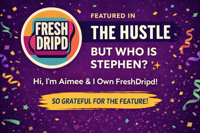 Back in January 2026 I pitched FreshDripd to The Hustle, a daily newsletter sent to over 1.5 million subscribers. On March 4th I woke up to a lot of orders and I couldn’t figure out why. Well we were featured. There was one glaring error, but publicity is publicity and I will take it. Seeing FreshDripd featured was such a cool moment… even if they listed the owner as “Stephen G.” Stephen, if you’re out there, apparently you’re doing great things. But in case there’s any confusion… hi, I’m Aimee. I own FreshDripd. And I’m incredibly grateful for the feature and the support. Big thanks to The Hustle for the spotlight. This founder is very excited (and very much not Stephen).